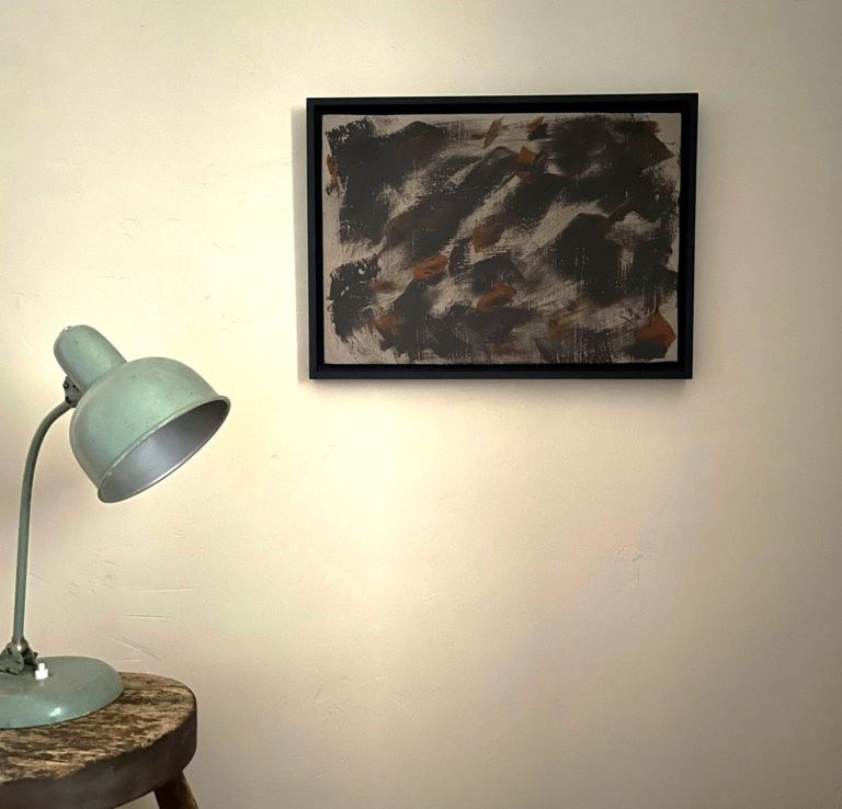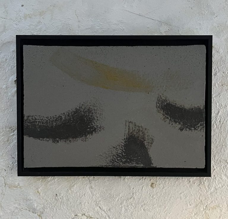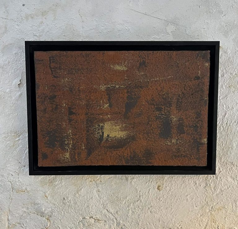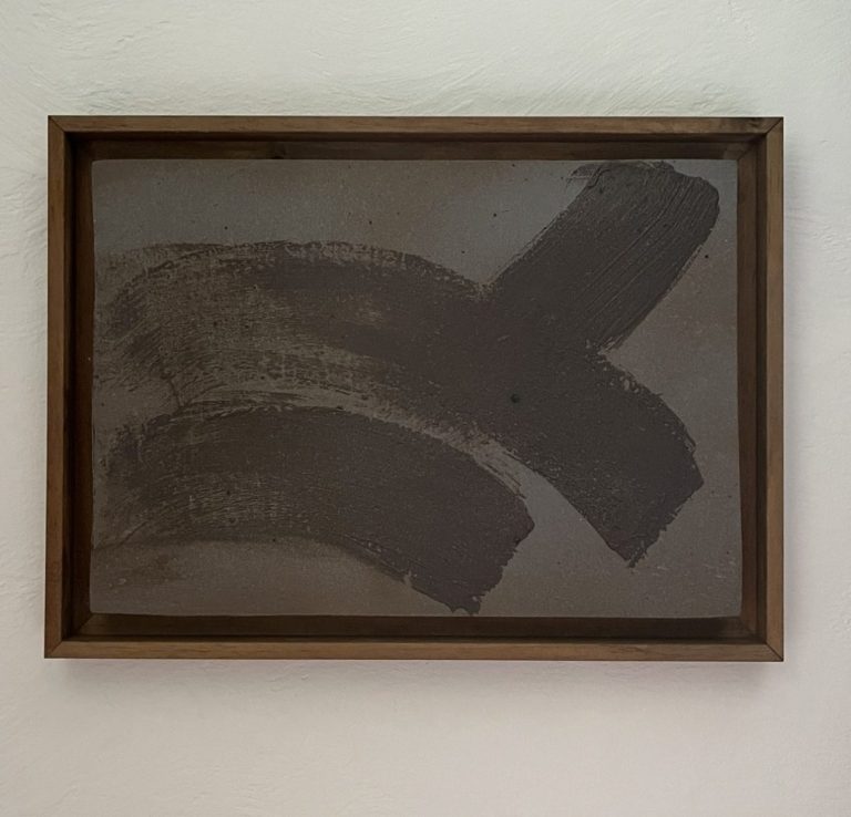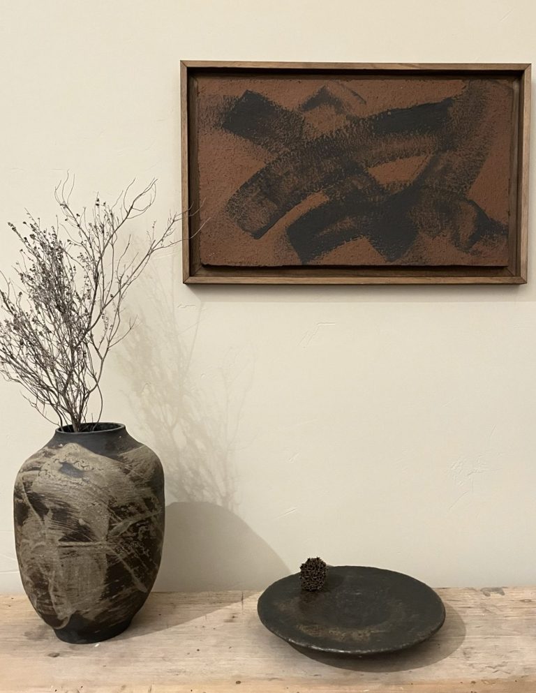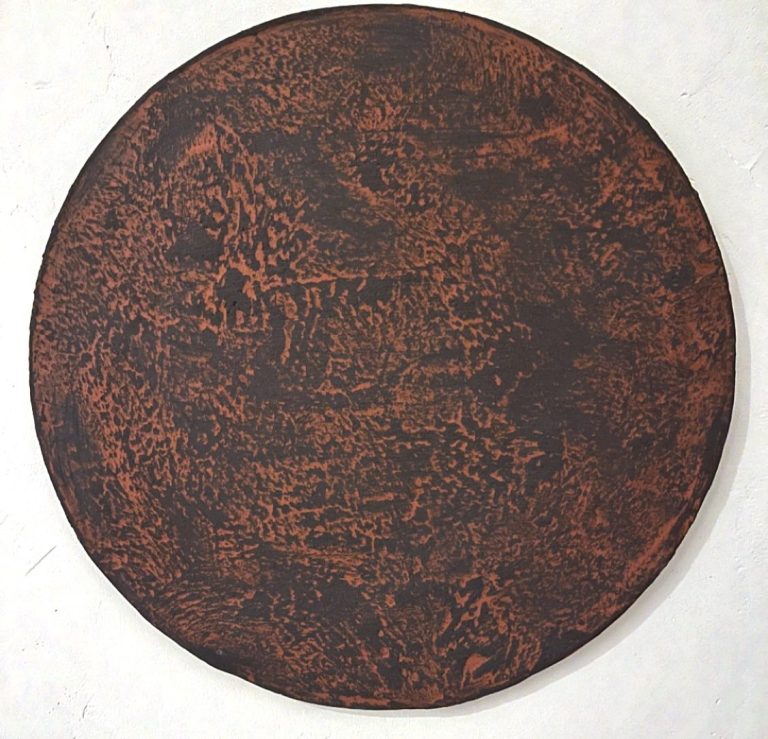 La réflexion est davantage portée sur la texture des matières déposées sur la toile d'argile et les contrastes générés par les différentes teintes qui se répondent entre elles.