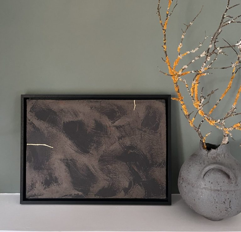 Peindre l'argile, avec de l'argile et en faire des tableaux captivants. C'est le défi artistique que je me suis lancé avec cette collection de plaques de grès émaillées et/ou engobées, enchâssées dans des caisses américaines en bois.